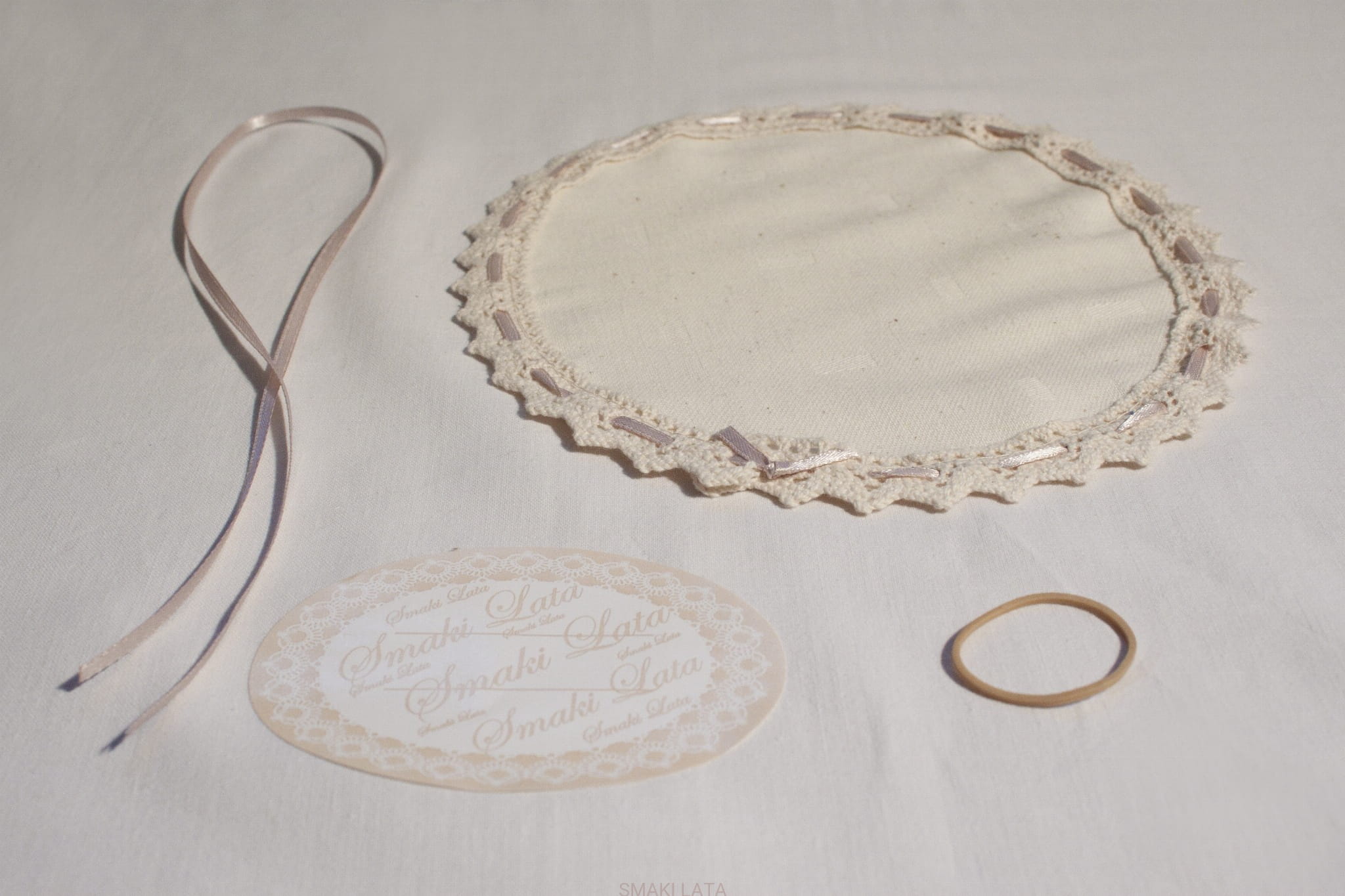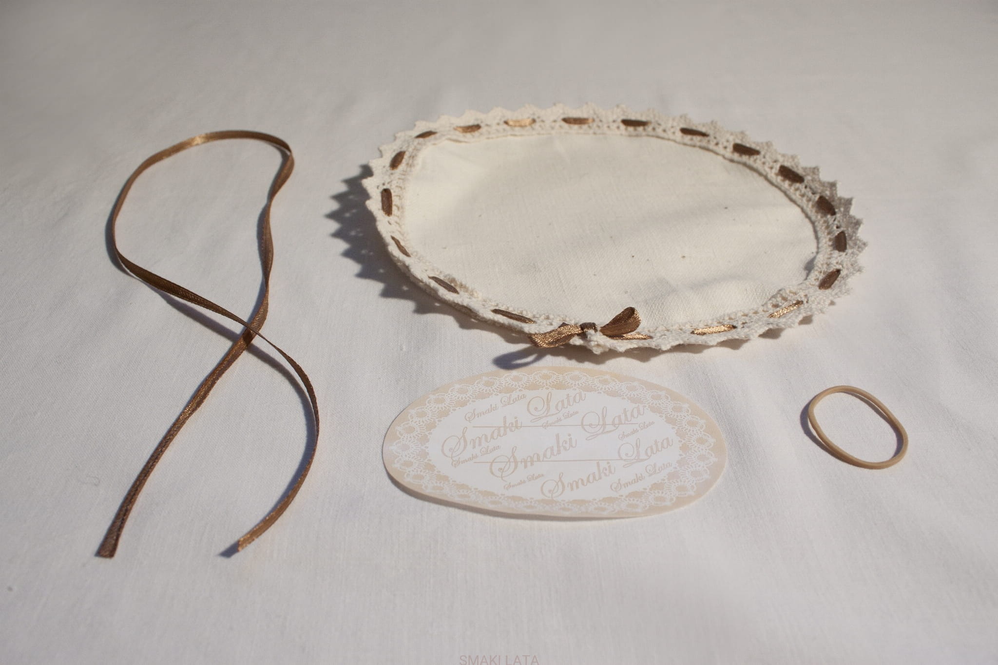 - serwetki bawełnianej, gumki, tasiemki i etykiety Smaki Lata